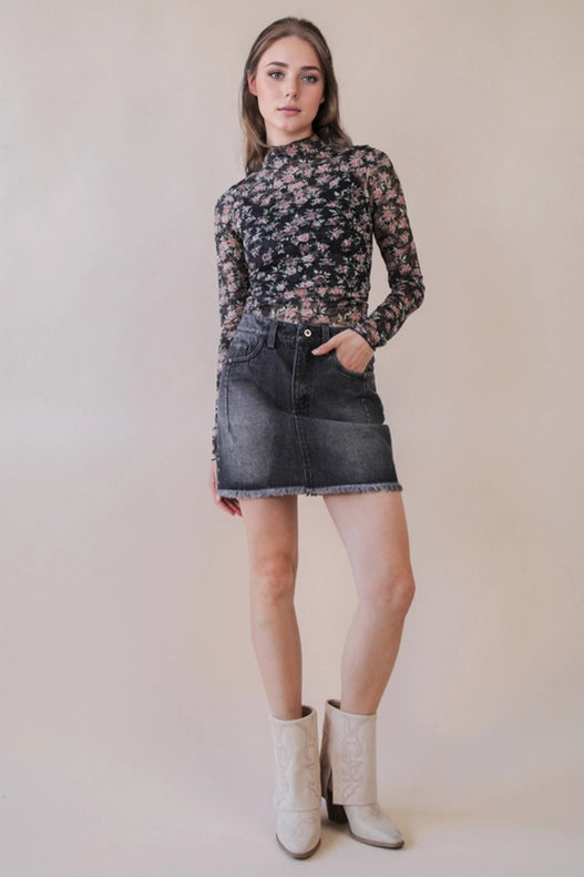 HIGH NECK FITTED SHEER MESH LACE KNIT TOP