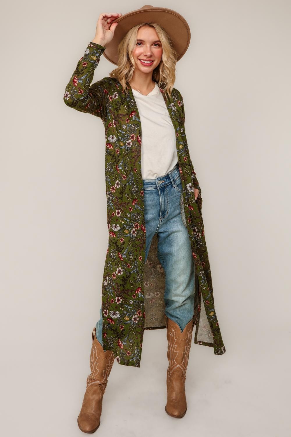 Elevate your layering game with this soft, stretchy floral hacci knit duster. Designed with an open-front silhouette and side slits for easy movement, it’s the perfect lightweight layer for work, weekends, and everything in between.