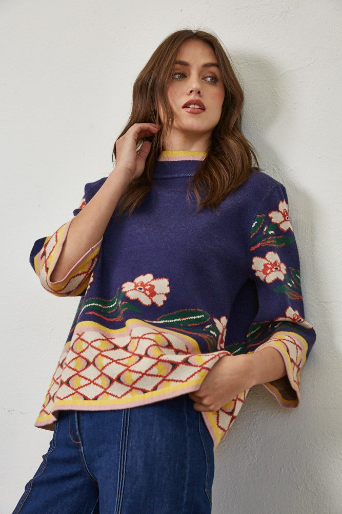 ✔ Beautiful geometric and floral jacquard knit pattern for a bold, statement look