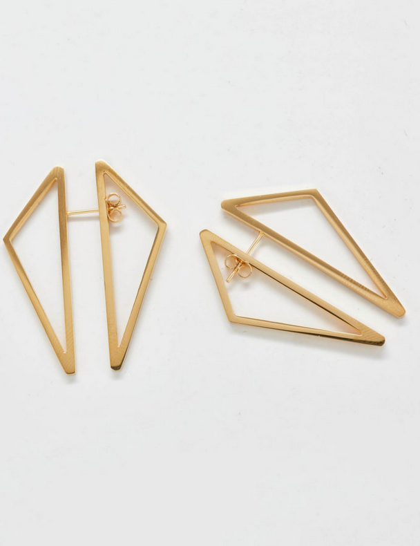 Make a statement at all angles with this double sided gold geometric triangle earrings. These interesting earrings will let you standout.