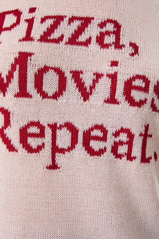 Cozy with a sense of humor, the “Pizza Movies Repeat” Roll Neck Lightweight Sweater is made for laid-back days and comfy nights. Featuring a relaxed roll-up neckline and a playful “Pizza Movies Repeat” graphic, this lightweight knit adds personality to your casual wardrobe. Easy to layer and effortless to wear, it’s the perfect blend of comfort and fun.