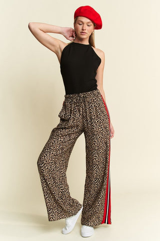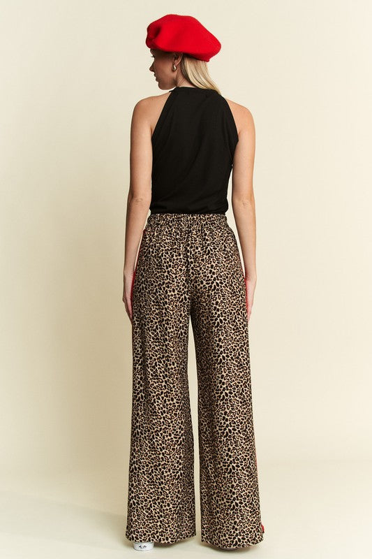 Unleash your wild side with our LEOPARD CONTRAST PANTS. These stylish trousers feature a bold red panel that adds a pop of color to the classic leopard print. Stand out from the crowd and make a statement with these eye-catching pants. Perfect for any fashion-forward individual!